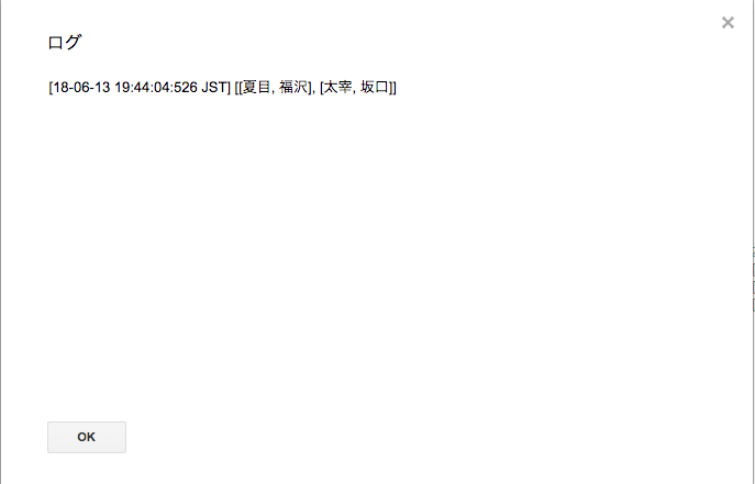 Logger.log(data)で変数dataの中身を出力すると、このようになります。