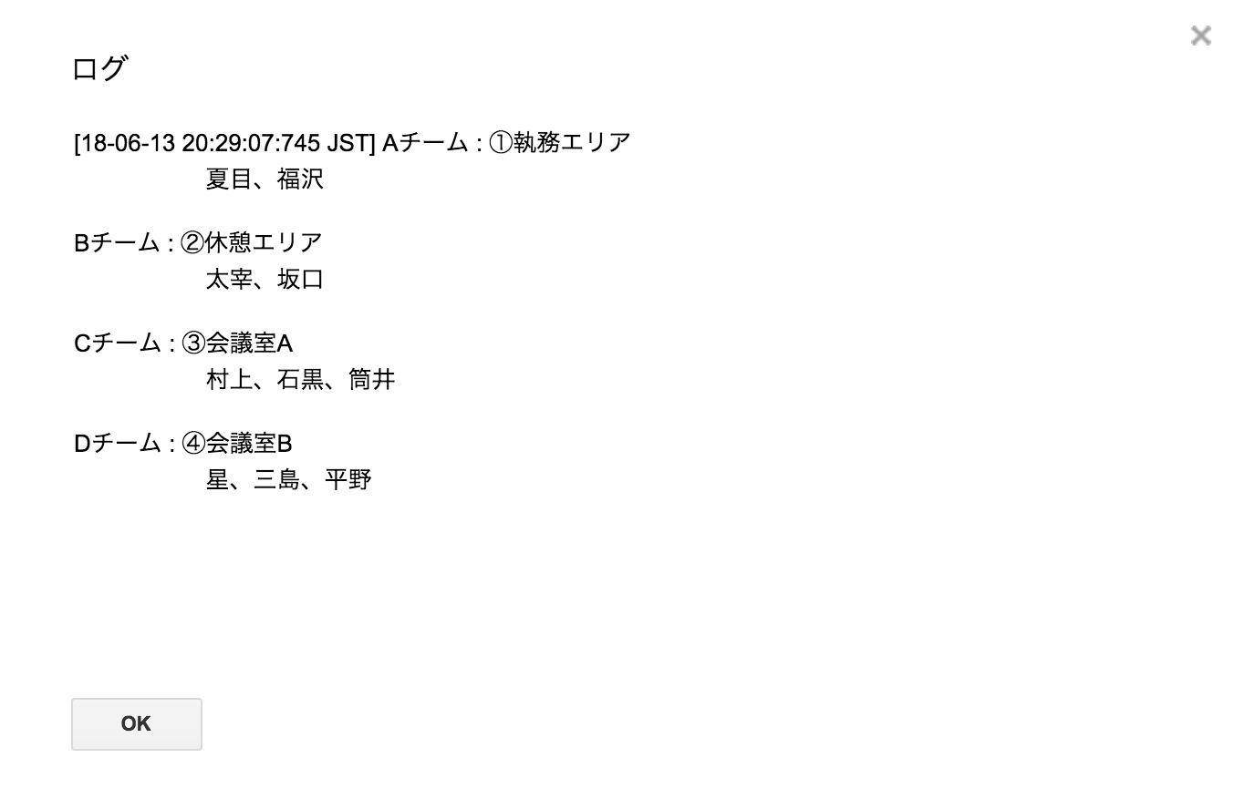 - チーム分け、チームメンバー、掃除場所を通知する